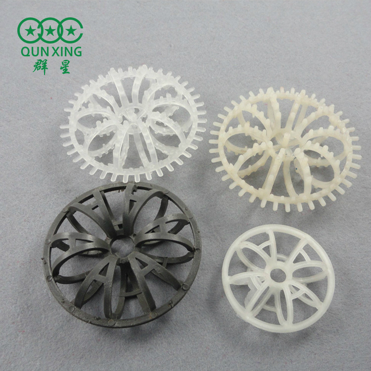 這種形如橢球的填料由許多圓環(huán)繞結而成,塑料花環(huán)填料又稱泰勒花環(huán)填料,是由12個小圓環(huán)按徑向排列而組成的一個大扁球體。由于填料的空隙處能有較高的持液量,可使塔內(nèi)液體的停留時間較長,從而增加了氣液兩相的接觸時間,提高了填料的傳質(zhì)效率。花環(huán)是由12個小圓環(huán)按徑向排列而組成的一個大扁球體,很類似于一個螺旋形彈簧首尾相接繞成的一個圓球體。有的小圓呈A字;有的在小圓和大圓邊沿還帶有齒;有的外圍沒有大圓圈,只是有里面的小圓組成,客戶可根據(jù)各自的要求訂購不同種類的花環(huán)。