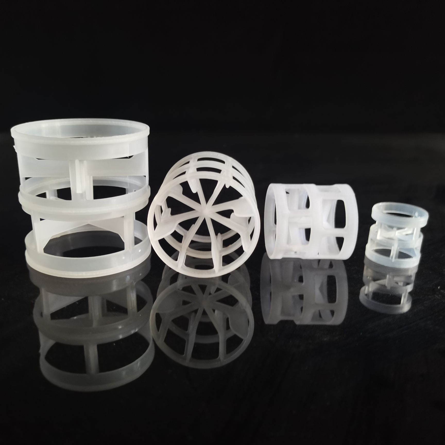 塑料散堆填料: 塑料散堆填料有:鮑爾環(huán)、鋸鞍環(huán)、異鞍環(huán)、階梯環(huán)、海爾環(huán)、共軛環(huán)、扁環(huán)、花環(huán)、空心浮球、多面球、網(wǎng)籠球和覆蓋球等